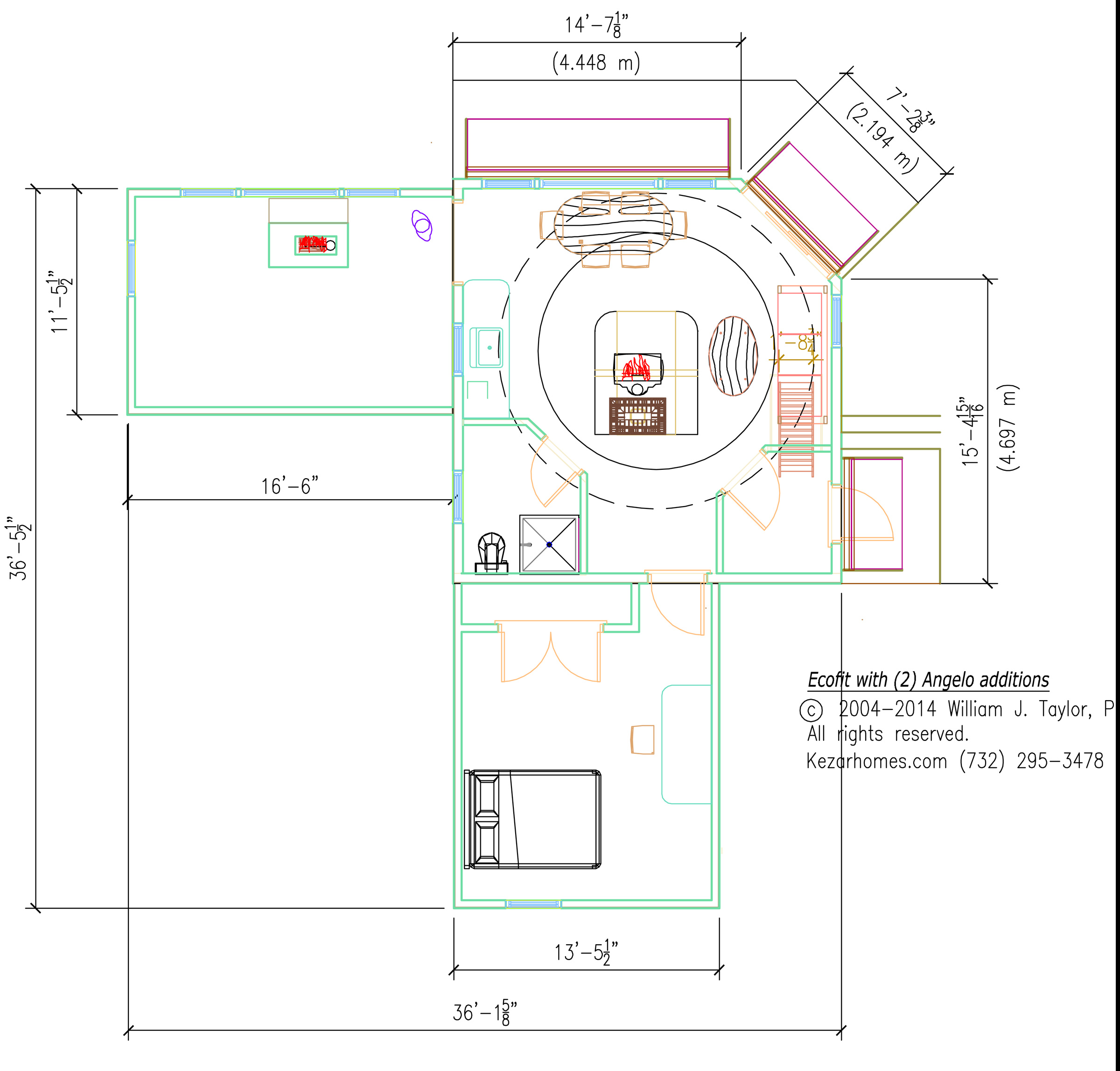 Passive solar open plan living area (approx. 20' x 20') designed with